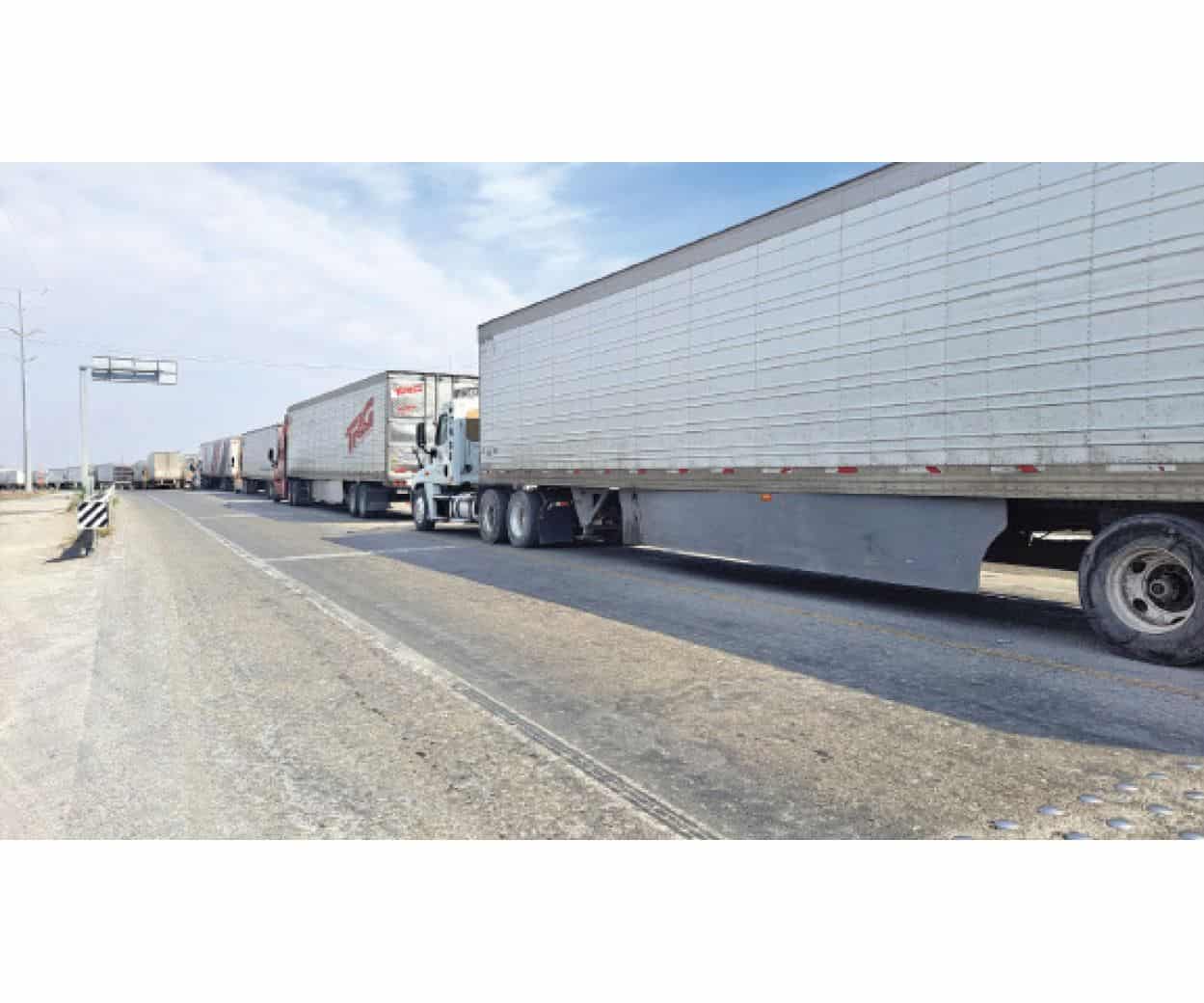 Miles de camiones con carga de mercancía de exportación permanecen varados en las rutas que conducen al puente internacional Reynosa-Pharr, en espera de cruzar, como resultado del retraso generado por la implementación del nuevo sistema aduanero, lo que ha provocado pérdidas económicas, mismas que no se han contabilizado aún, pero que ascienden a varios millones de pesos.